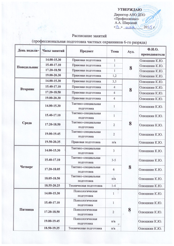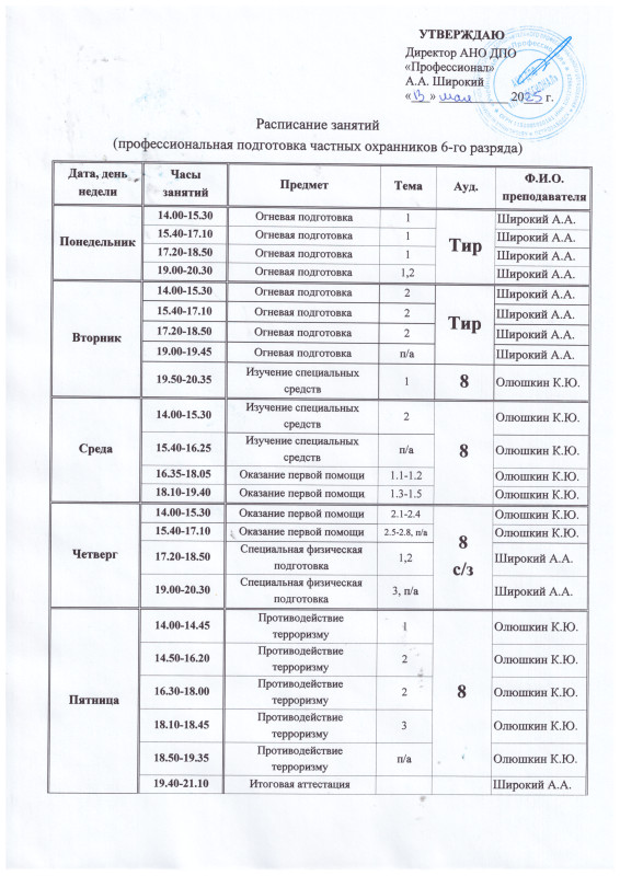 1. Профессиональная подготовка охранников 6-го разряда.